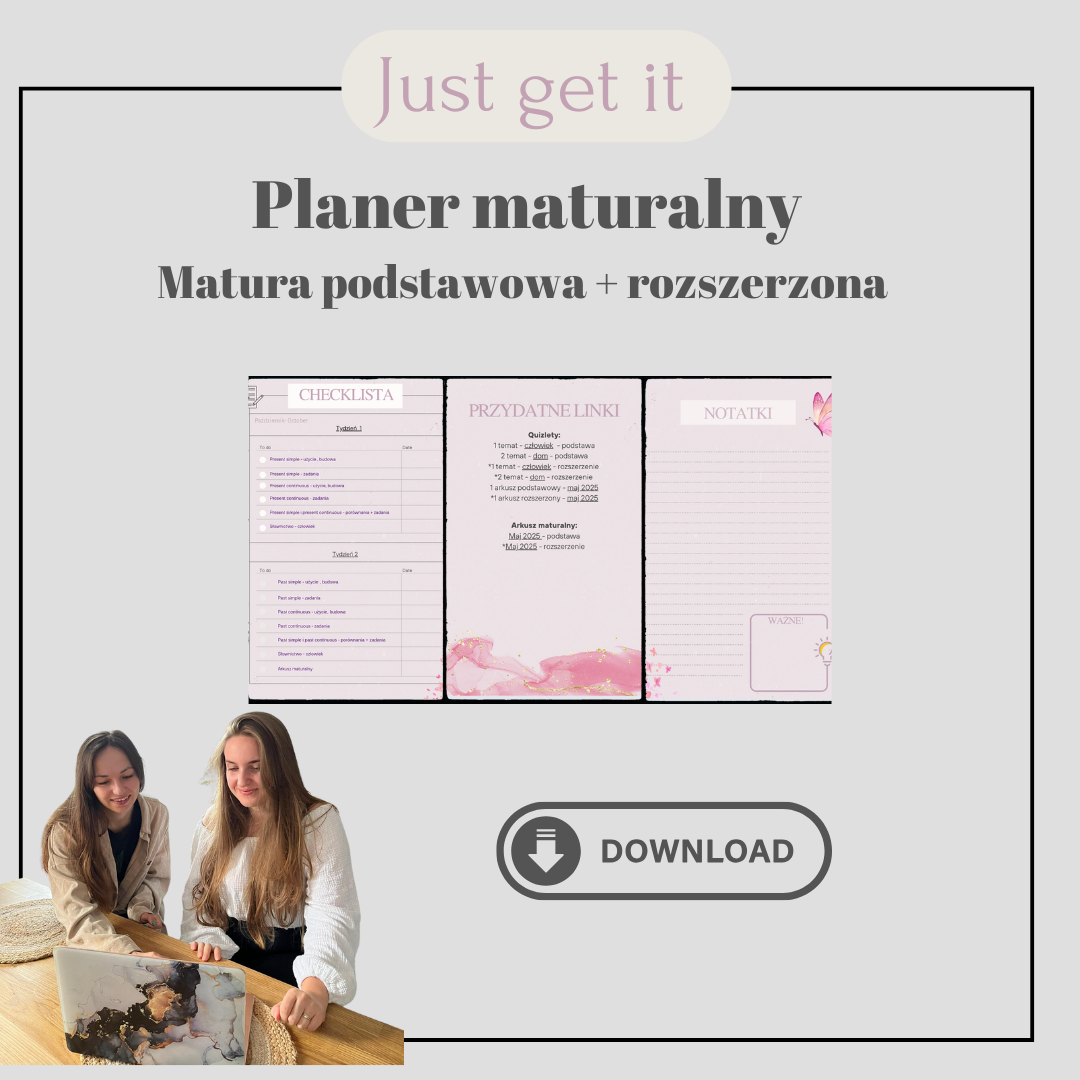 Stworzyliśmy Planer Maturalny (poziom podstawowy i rozszerzony), który rozpisuje naukę na 7 miesięcy - od października do kwietnia. Każdego miesiąca otrzymasz nowy planer z zadaniami i checklistami, które pomogą Ci systematycznie ogarnąć cały materiał.
